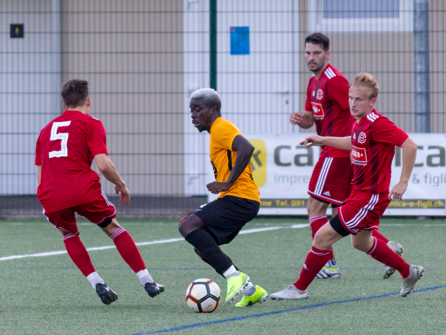 Die AC Taverne feierte am Spieltag mit einem Jahr Verspätung sein 70-jähriges Bestehen und zeigte sich im besten Scheinwerferlicht. Auch auf dem Platz agierte die Mannschaft von Trainer Damiano Meroni mit einer offensiven Aufstellung und viel Zug nach vorne. Den Gästen aus Eschenbach hingegen machten die schweren Beine der langen Anreise zu schaffen. Sie bekundeten Mühe ins Spiel zu kommen und einen schnellen Spielaufbau zu realisieren. Taverne konnte dies aber trotz mehreren guten Möglichkeiten nicht ausnutzen. Daniel Mele traf nur den Pfosten, Mamadou Ndaw stand bei seinem Treffer im Offside und Matteo Agostini setzte seine Top-Chance knapp neben das Tor. Zum Pausenpfiff war es auf dem Sportplatz Campo Comunale noch torlos, auch dank einem sicheren Janis Bachmann im Seetaler Tor.