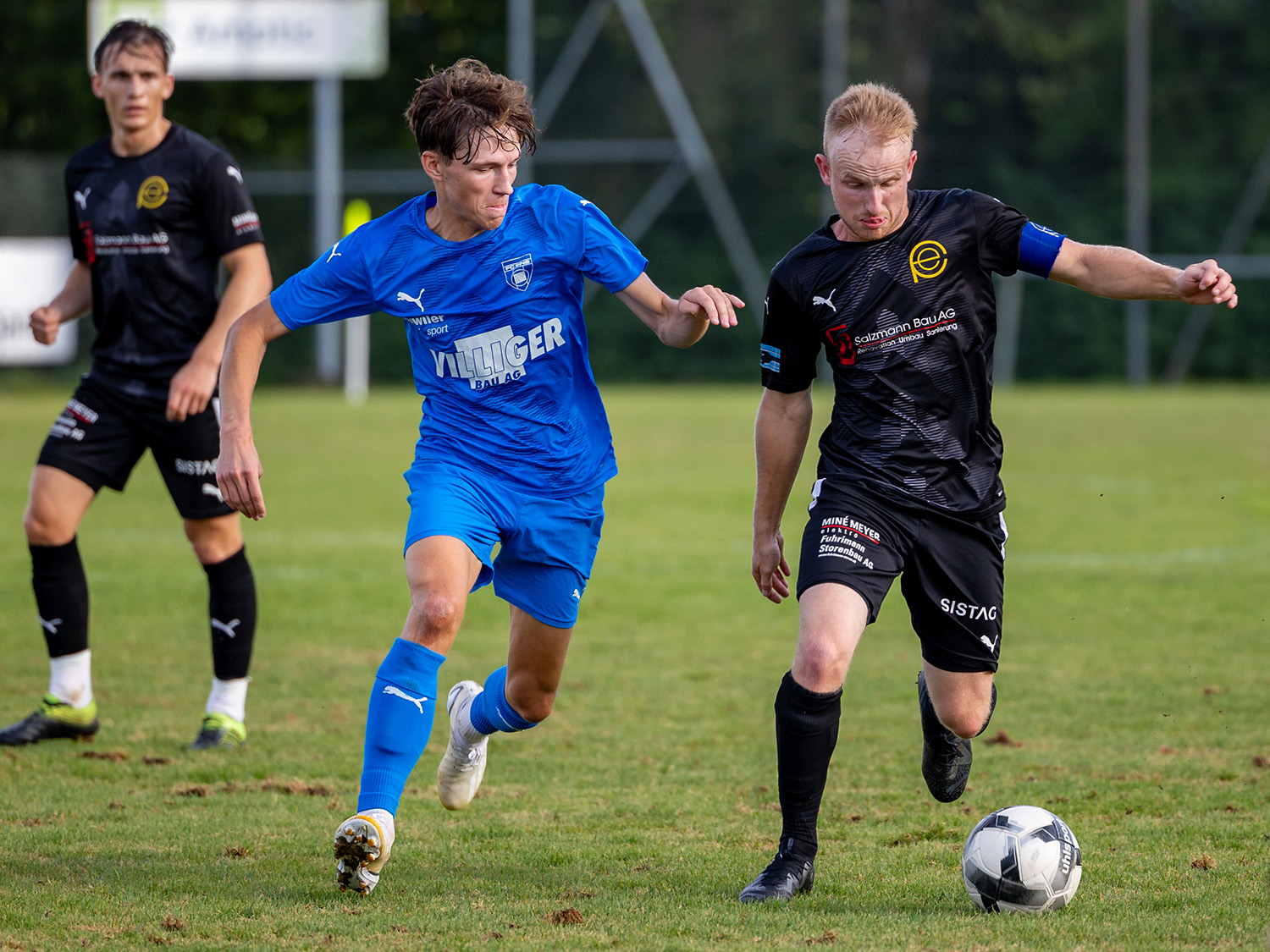 Doppeltorschütze Lukas Bulut (rechts) setzt sich erfolgreich gegen Jonas Villiger durch. - Foto: Daniel Gerber (FC Eschenbach)