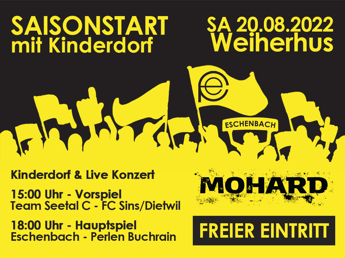 Unser Fanionteam startet am 20. August 2022 mit einem Derby gegen Buchrain-Perlen in die neue Spielzeit. Zur Feier des Saisonstarts organisieren wir einen Sommeranlass auf dem Sportplatz Weiherhus. Der Eintritt zu zwei Fussballspielen, dem grossen Kinderdorf und Live Konzert von Mohard ist kostenlos.